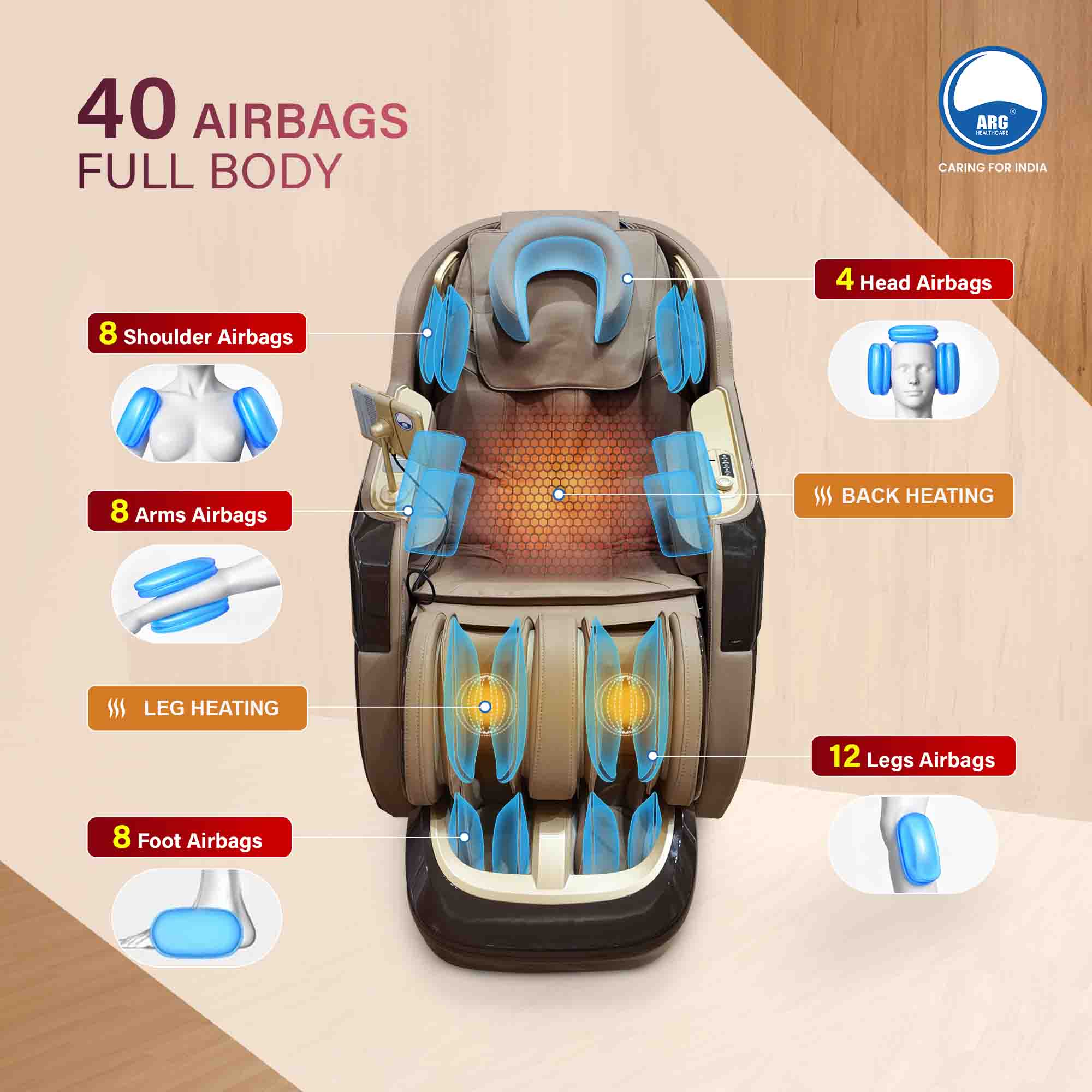 Equipped with 40 airbags that gently compress the shoulders, arms, waist, legs, and feet for a relaxing full-body massage experience. - Zero Gravity Relaxation