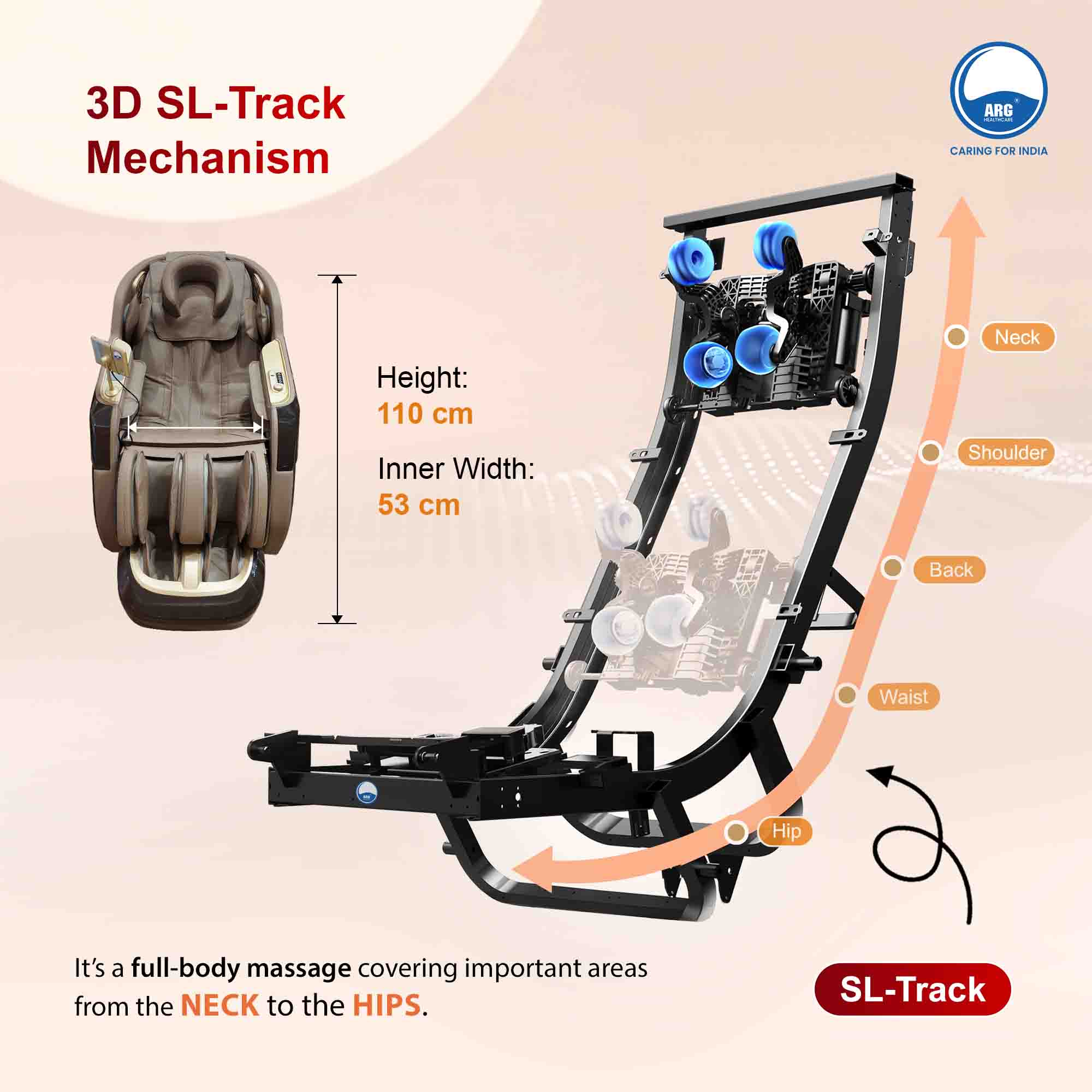 Advanced 3D rollers glide along the extended SL track, providing deep and precise massage coverage from the neck to the thighs. - Full Body Airbag Compression