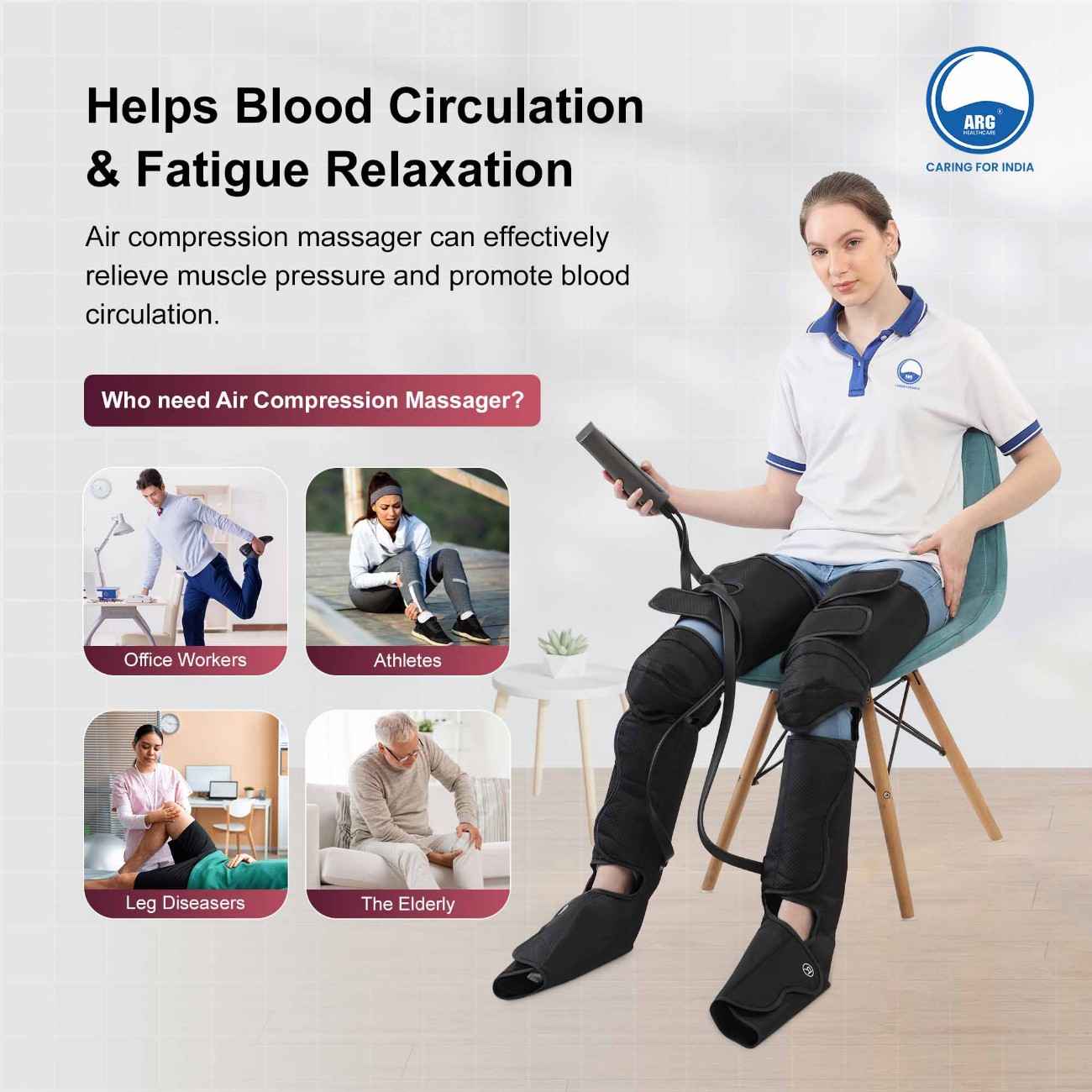 Experience ultimate relaxation with our Air Compression Leg Massager. Benefits include adjustable intensity for personalized pressure, customizable heat settings, three distinct vibration modes, automatic memory function for convenience, and easy mode switching for a tailored massage experience.