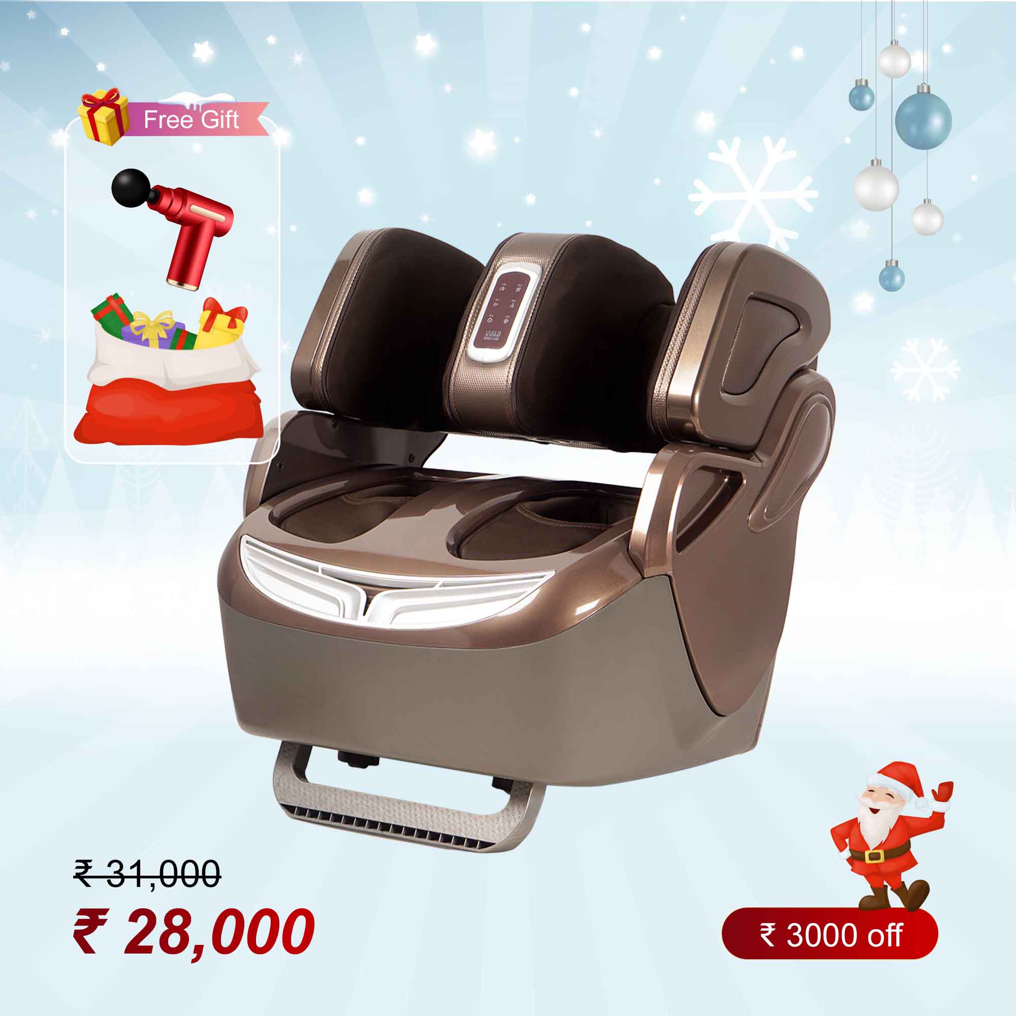 Introducing the ARG HEALTH CARE Leg and Thigh Massager 360. Experience deep kneading, squeezing, rolling, vibration, and shiatsu massage with heat for feet and calves simultaneously. Advanced 3D Massage Technology provides comprehensive relief for feet, calves, toes, knees, soles, and thighs.